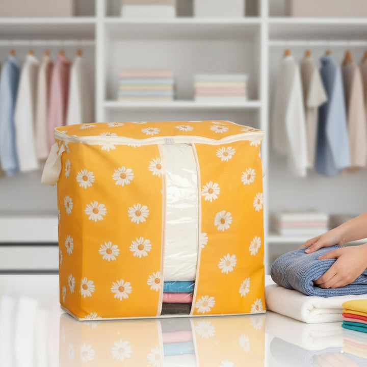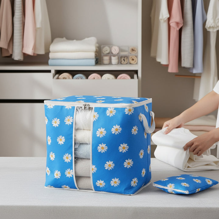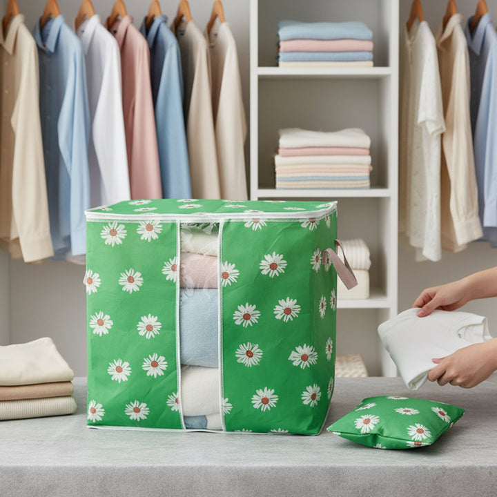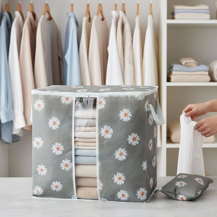 - Versatility: Our Daisy Oasis - 37 kg Weight Carry Storage Bags are perfect for storing everyday essentials like apparel, blankets, comforters, footwear, and other dry goods. They're ideal for travel and organizing seasonal belongings like bedding, garments, and more. When not in use, they can be easily folded and stored in a compact space.